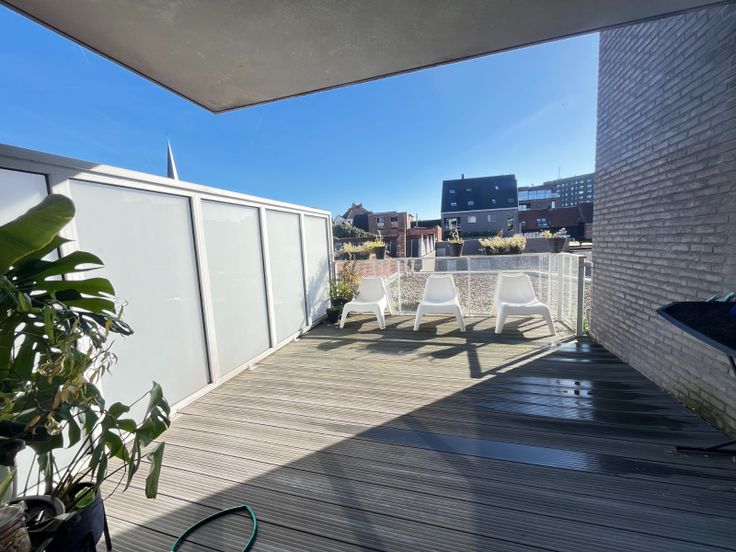 Er is 1 ruime slaapkamer aanwezig die je toegang geeft tot het erg gezellige zonneterras.