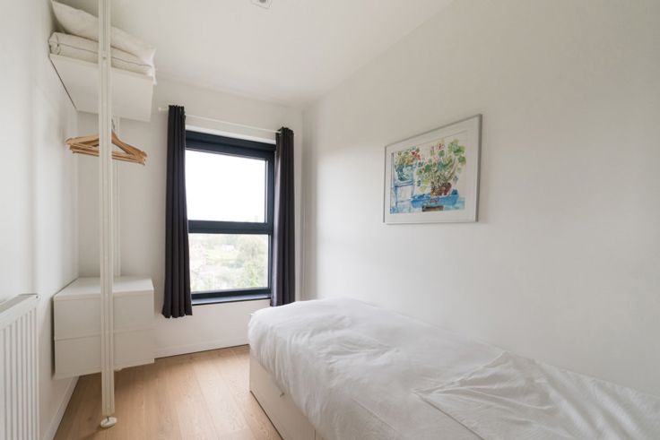 ZAVENTEM - Aan de grens van Sint Lambrechts Woluwe en dicht bij de grote invalswegen, prachtig APPARTEMENT (1slpk/ bur/1bdk/EPC A!!) van ± 80m² met TERRAS en buitenparking. Gelegen op de 5e verdieping en met een zeer mooi uitzicht, bestaat het uit: inkomhal, vestiaire (+ technische ruimte), lichte woonkamer met toegang tot het terras van 12m², slaapkamer (14m²), kinderkamer/bureau (6,5m²) en douchekamer (douche, wc, lavabo). Buitenparkeerplaats inbegrepen in de prijs. Elektriciteit conform. EPC "A": 55kwh/m²/jaar. Exclusief te ontdekken bij Latour en Petit!