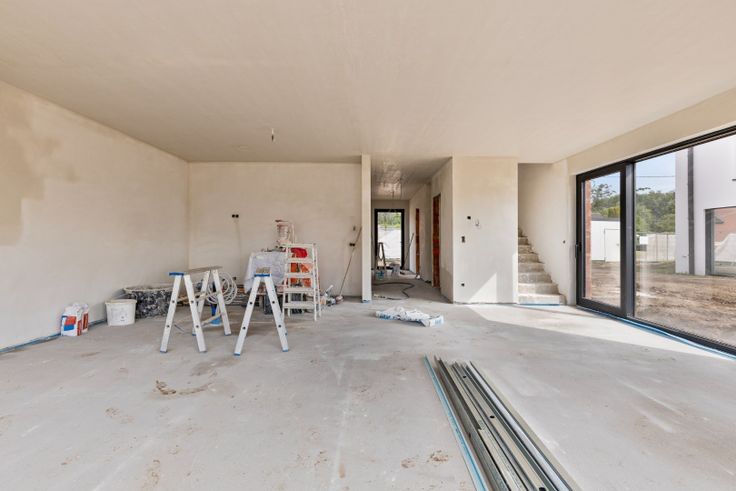 Via de inkomhal, met gastentoilet en ruimte voor vestiaire, komt u in de open leefruimte welke opgedeeld is in een zithoek, eethoek en een open keuken, uitgerust met een vaatwasser, combi-oven, koelkast, Bora inductievuur met geïntegreerde afzuiging, spoelbak en een composieten werkblad. Dankzij de grote ramen geniet u aangenaam veel lichtinval in de leefruimte. Verder is er een berging/wasplaats met voorzieningen voor het plaatsen van een douche, en een inpandige garage.