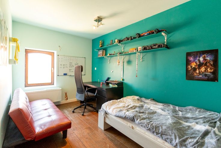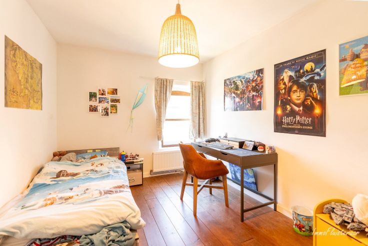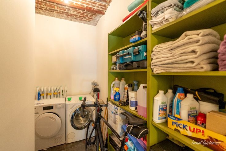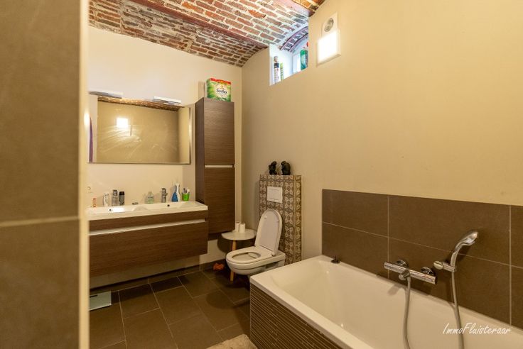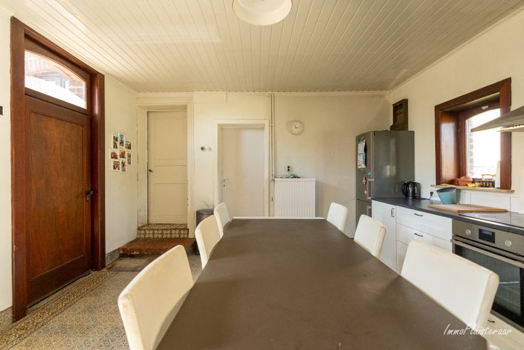 De woning heeft een uitnodigende inkomhal die toegang geeft tot een gezellige leefruimte en aangrenzende eetplaats. Er is een afgesloten bureauruimte en een praktische keuken. De badkamer combineert charme en comfort, met een ligbad, inloopdouche en authentieke details. De extra bergruimte en inpandige garage maken het geheel compleet.