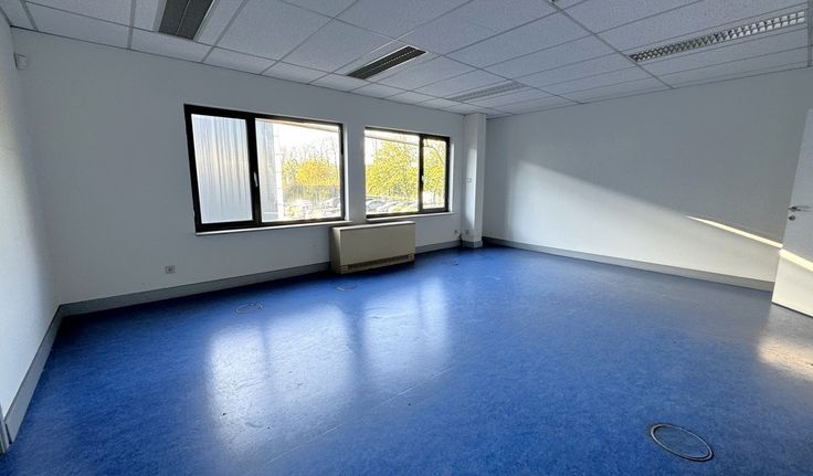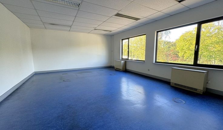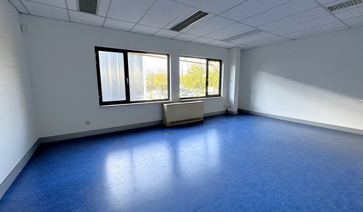 Specificaties kantoor: pvc schrijnwerk met dubbele beglazing en opengaande ramen, ingedeelde kantoren met kitchenette en privatief sanitair, vrije hoogte 2,5m, verlaagd plafond met inlegtegels, inbouw tl-armaturen, elektrische verwarming met convectoren, linoleum vloerbekleding, ruime parking aan het pand