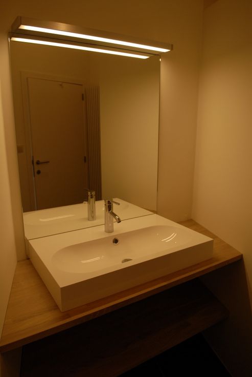 Alle vloeren zijn uitgevoerd in massief eiken parket behalve de badkamer en het inkom gedeelte, deze zijn betegeld.