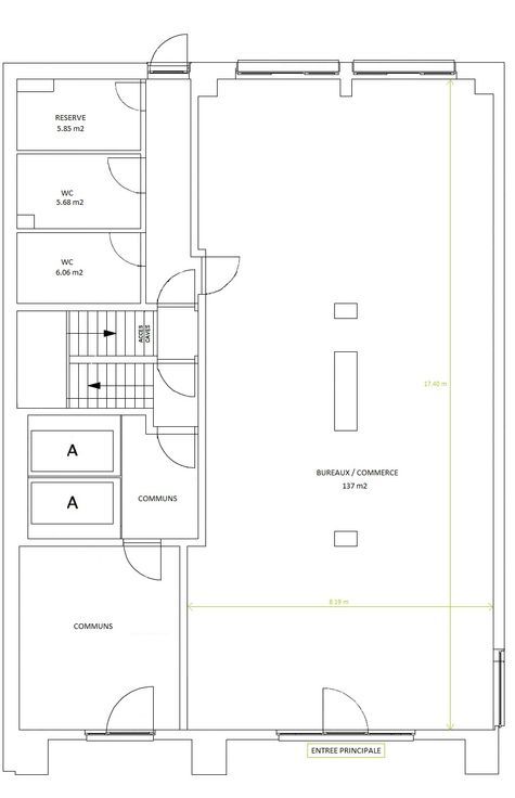 Découvrez ce rez-de-chaussée commercial/bureau de 154 m² à proximité du Parc de la Boverie ! Il se compose d'un open space, de deux grandes toilettes ainsi que d'une cuisine. Caractéristiques : chauffage au sol, compteurs individuels, caméras de surveillance dans les communs. Revenu cadastral : 1900,00€ (précompte immobilier à charge du locataire). Garantie locative : 2 mois de loyer. Disponible à partir du 01/11/2024. Infos & visites : 04 381 92 61 - infos@s-invest.be