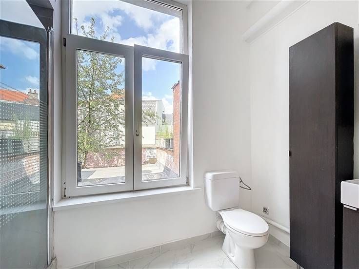 Op het Gemeenteplein in Sint-Jans-Molenbeek - Gerenoveerd handels- en residentieel gebouw als volgt samengesteld: Gelijkvloers: Een handelsgelijkvloers met een ruimte vooraan van +/- 30m², een ruimte achteraan met een toilet van +/- 22m² en een binnenkoer achteraan van +/- 24m². Op de eerste verdieping: Een studio van +/- 35m² bestaande uit een woonkamer, een ingerichte keuken en een douchekamer met toilet. Op de 2de verdieping: Een duplex appartement van +/- 40m² bestaande uit een woonkamer, een volledig ingerichte keuken, een slaapkamer, een badkamer en een apart toilet. Voorzieningen en comfort: dubbele beglazing, fietsenberging, elektriciteit volgens de voorschriften, EPB 1e en 2e verdieping: F - Beschikbaar op basis van erfpacht .