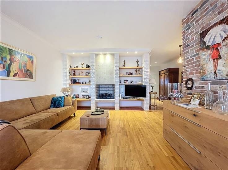 Parc des Étangs - Gebouwd in 1997 - Penthouse +/-100m² 1 slaapkamer met terras en garage. Het is als volgt samengesteld: een inkomhal, een woonkamer +/-45m² met ingerichte keuken, een wasruimte, een nachthal, een slaapkamer +/-25m², een douchekamer +/-10m², een apart toilet, een technische ruimte en een terras op het zuid-westen. - Mogelijkheid tot aankoop van een garagebox met kelder tegen een meerprijs van €30.000. - Voorzieningen: parlofoon, versterkte deur, massieve parketvloer, dubbele beglazing, airconditioning, werkende open haard, individuele verwarming op gas, wasmachine ruimte, fietsenruimte/vuilnisruimte, PEB: D, Beschikbaar op basis van erfpacht.