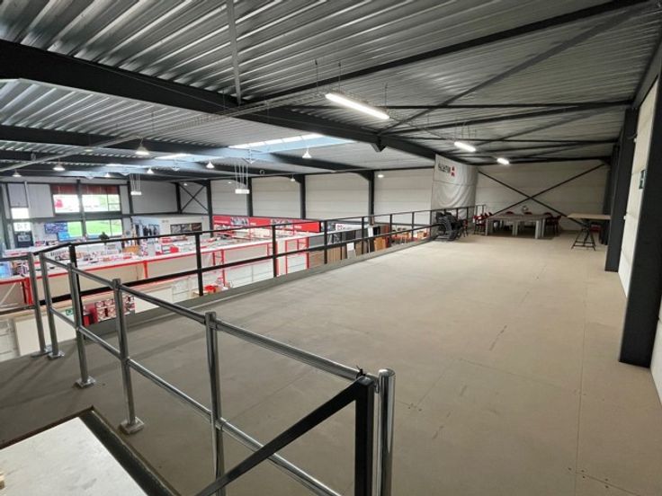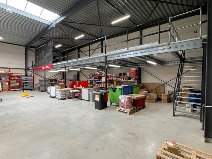 - Mezzanine voorzien van 100m² achteraan het gebouw