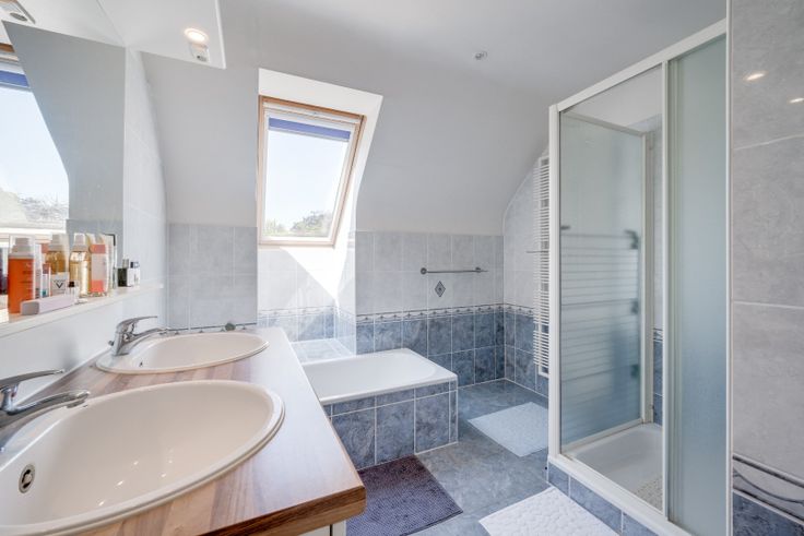 Via de trap komen we in de nachthal, hier zijn 3 slaapkamers, een berging en een badkamer met ligbad, douche en toilet.