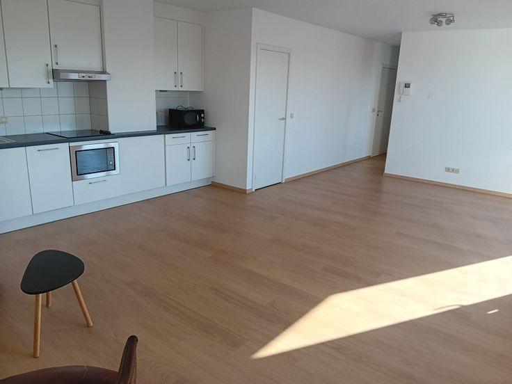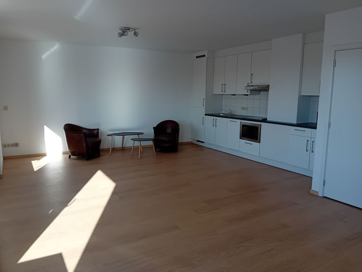 Nieuw appartement van 90 M2 met reuze groot terras op de zesde verdieping van een gebouw met extreem centrale ligging. Airco. 2 slaapkamers. Parking mogelijk in het gebouw.