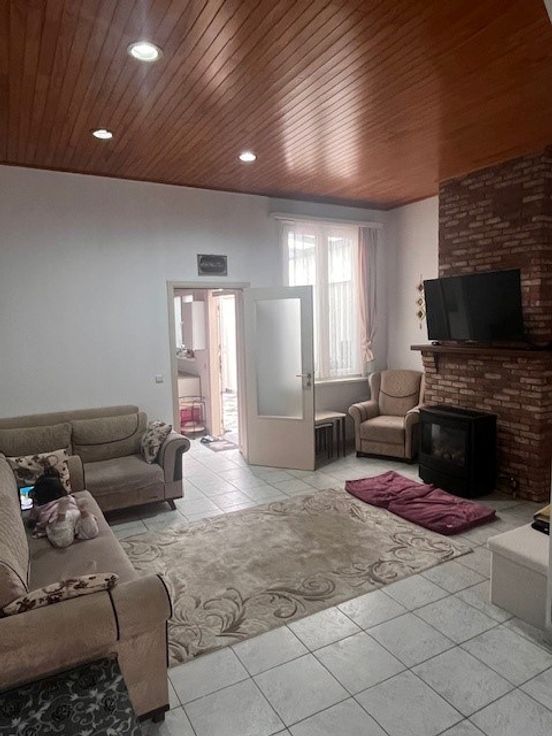Nabij station, scholen, winkels hebben we deze leuke stadswoning te koop. Inkomhal, ruime living, aparte ingerichte keuken, berging/wasplaats, badkamer met ligbad/douche, toilet en lavabo-meubel. Overdekte veranda en terras. Tuin met kunstgras. 1ste verd : 2 ruime slaapkamers. 2de verd : open zolder met vaste trap waar 3de - 4 de slaapkamer is. Asbestveilig, PVC dubbel glas, vernieuwd dak ( 2018 ). Vernieuwde gaskachel. Mogelijkheid tot huren van garage ( 50 € per maand ).
