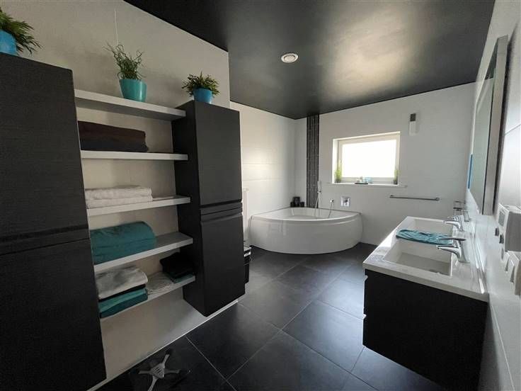3 slaapkamers (2 met dressing en airco), apart toilet, was- en strijkkamer, grote badkamer met dubbele lavabo, regendouche