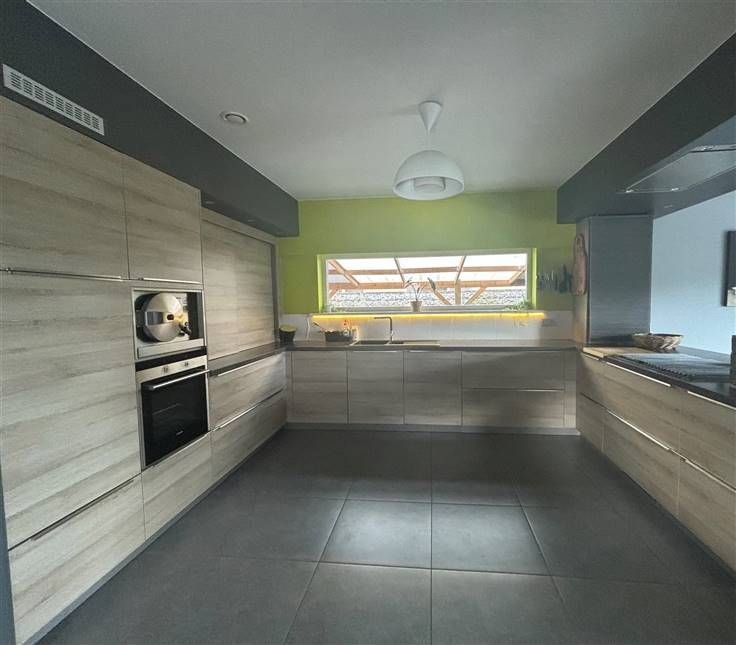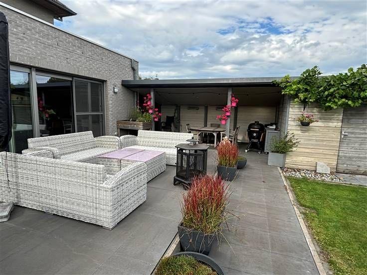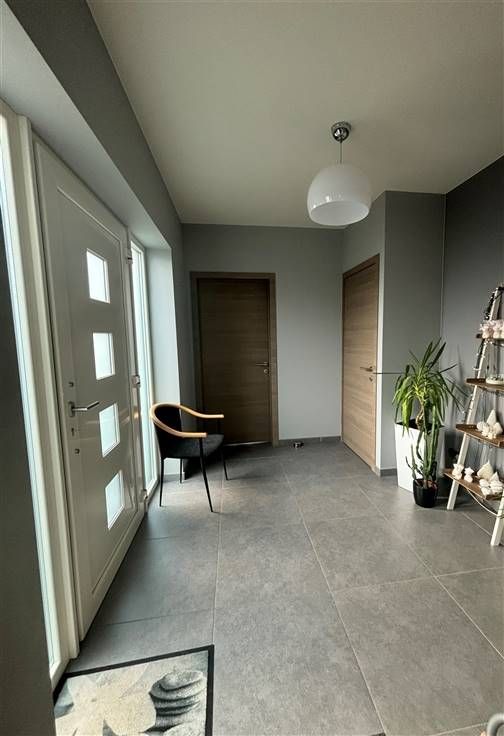 In Sint-Kruis-Winkel, grens met Wachtebeke. Energiezuinige, grote woonst van 268m². Uitzicht op de Moervaartvallei. Vlakbij bussen, scholen, winkels en grote verbindingswegen. INDELING GLV: inkom, wc, praktijk/bureau/slk, woonkamer met open keuken met veel licht via schuiframen naar het terras met groen verzicht, grote berging en garage. 1E VERDIEP: 3 slk (2 met dressing en airco), wc, was- en strijkkamer, grote badkamer met regendouche en hoekbad. ZOLDER: via vaste trap, af te werken tot 1 of 2 extra slk of een hobbyruimte. ENERGIE: glvl: vloerverwarming en gashaard. 1E verd. CV, badk ook vloerverw.. 20 zonnepanelen en zonneboiler met 3 zonnepanelen. EPC label A.