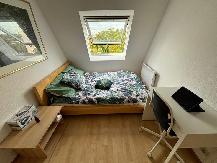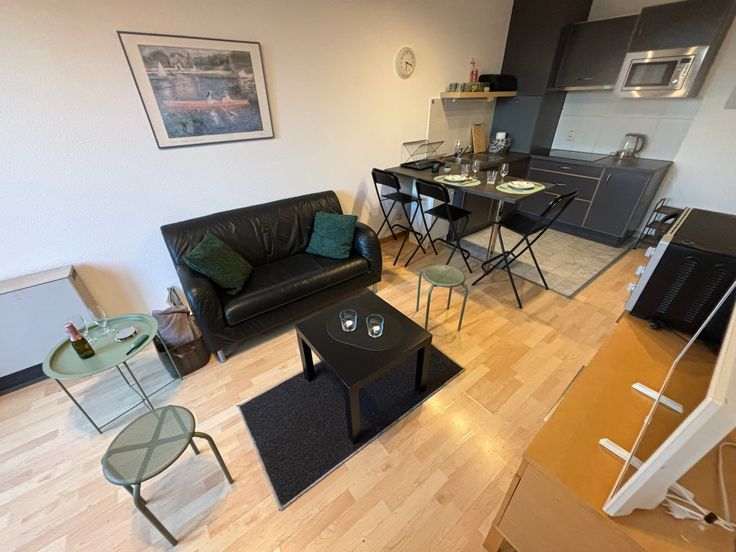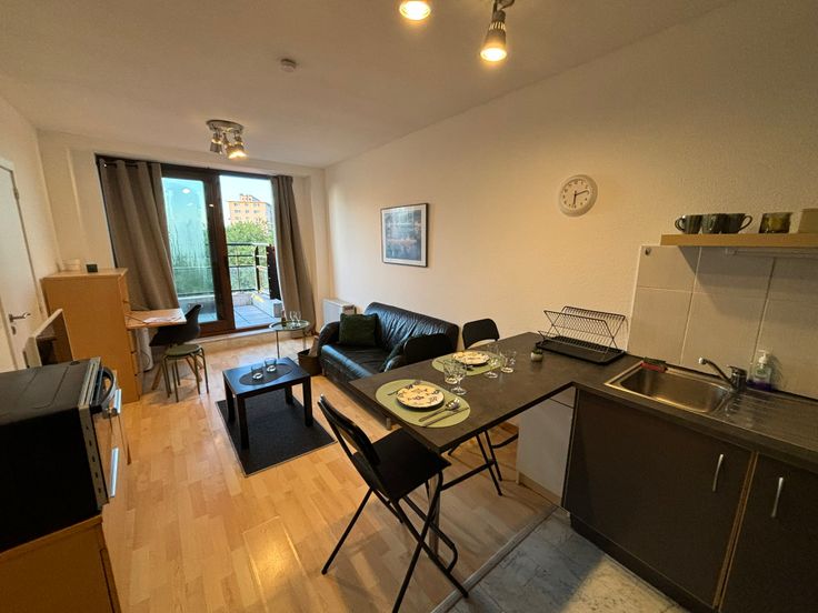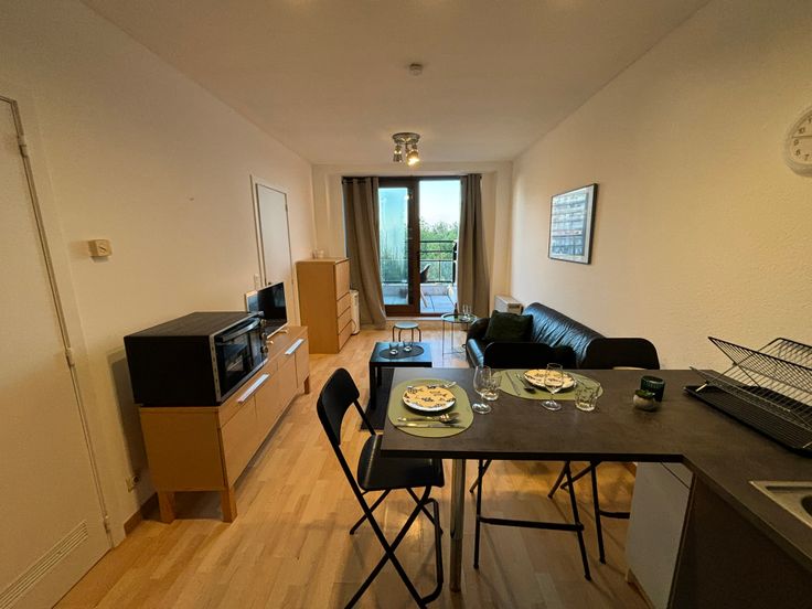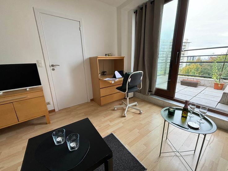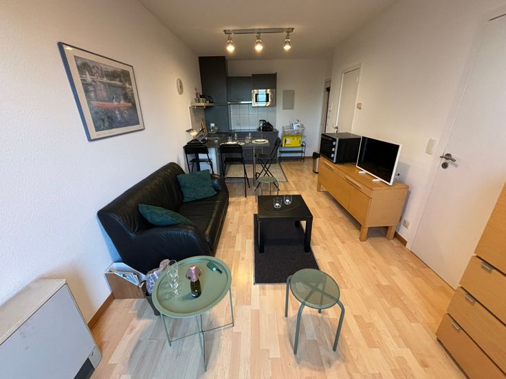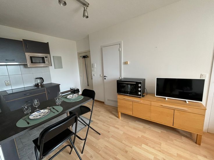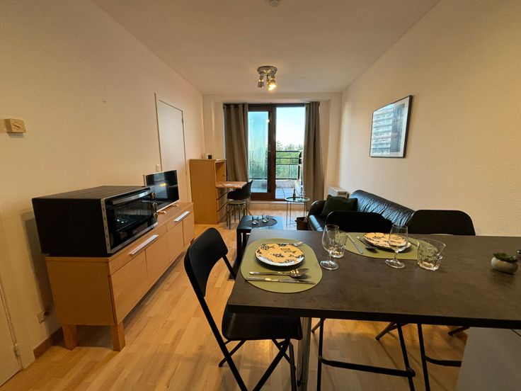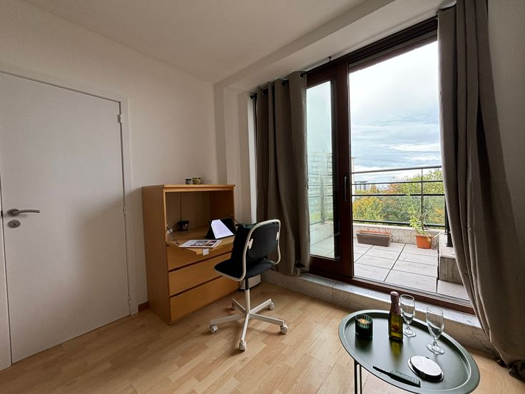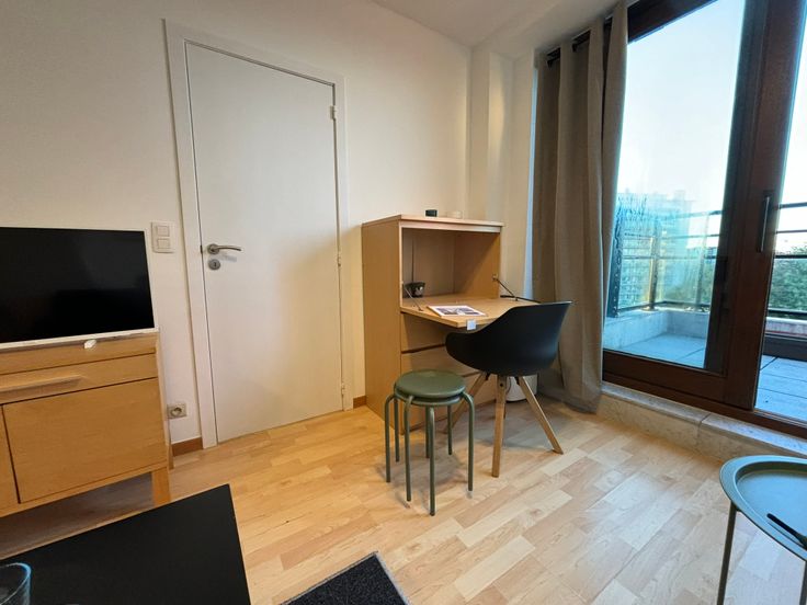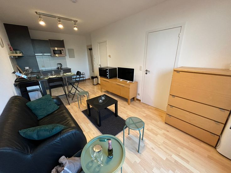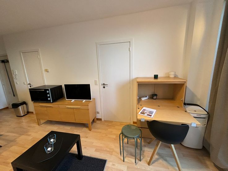 **ONMIDDELLIJK BESCHIKBAAR** Gezellig volledig gemeubeld appartement op de 6e (hoogste) verdieping. Ideaal gelegen in buurt “Dunant” nabij alle faciliteiten, diverse winkels, apotheek, openbaar vervoer enz. Werd zonet opgefrist en volledig herschilderd : nieuwe boiler, nieuwe kookplaat, nieuwe frigo, nieuw aanrecht, nieuwe gordijnen, nieuwe handdoeken en lakens + kussens, nieuwe matras enz. Volledig gemeubeld : + keukenmateriaal, waterkoker, koffiezet, pannen, strijkijzer + benodigdheden voor was, matras, kussens, lakens, handdoeken, poetsgerei enz. U hoeft gewoon uw persoonlijke spullen mee te brengen! Open keuken met eethoek + microgolf + oven + nieuwe vitro ceramische kookplaat en frigo met vriesvak, dampkap. Het appartement beschikt over een aparte badkamer met wc, 1 lavabo en grote inloopdouche. Aparte, ruime slaapkamer met dubbel bed 1m40, kast en bureauhoekje. In de woonkamer is er eveneens een bureauhoekje voorzien. Er is een terras van +/- 3 m² met mooi uitzicht op een parkje. In de gemeenschappelijke delen is er een wasserette (wasmachines en droogkasten) met jetons. 1 ondergrondse autostaanplaats : verplicht bij te huren aan + 100 EUR/maand Provisie op gemeenschappelijke lasten, incl. provisie privatief koud waterverbruik : + 100 EUR/maand Elektrische verwarming : apart contract te onderschrijven door de huurder. Collectieve waterverzachter Wordt dit jouw nieuwe stekje?