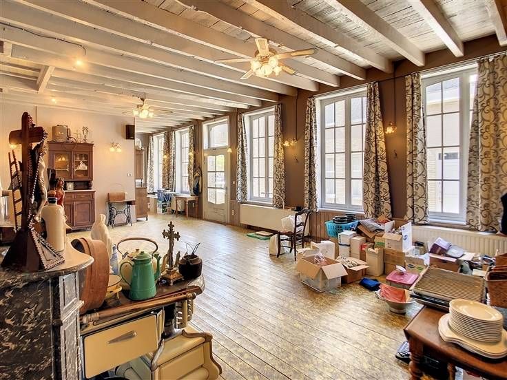 Authentieke woning/voormalige horecazaak in hartje Roesbrugge. Gelijkvloers: vroegere restaurantgedeelte, momenteel ingericht is als leefruimte, professionele keuken met aansluitend de berging met frigocel, polyvalente ruimte die dienst deed als extra zitplaatsen voor groepen, sanitair en twee droge kelders. Niet te vergeten, gezellig terras met zicht op de kerktoren! 1e verdieping: privégedeelte met ruime leefruimte, slaapkamers, badkamer met lavabomeubel, douche en toilet en een zolderkamer. Vanuit de 2de slaapkamer komen we terecht in het zoldergedeelte met mogelijkheid tot extra slaapkamer. Het is tevens mogelijk om vanuit de 2de slaapkamer naar het terras te gaan op de benedenverdieping. Er is een tweede zolderruimte boven de leefruimte. Troeven aan dit pand zijn zeker de authentieke elementen en de vele mogelijkheden!