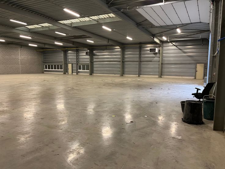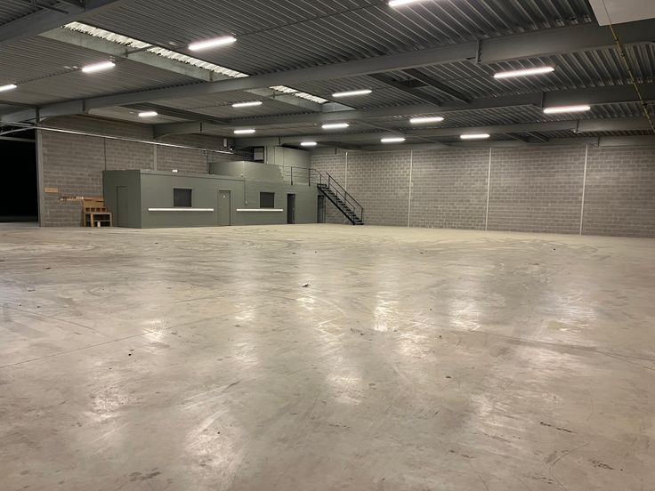 - voorzien van een polybetonvloer (3 T/m²), verlichting en aerothermen op gas