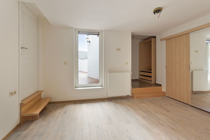 Opzij een apart toilet. De leefruimte opgesplitst in een eetruimte en woonruimte heeft houten plankenvloer. ( circa 23 m2 ). De hoekligging van dit pand zorgt voor bijzonder veel lichtinval! Er is tevens een ZO- terras. Terug naar binnen! Op de eerste verdieping verder nog een ruime slaapkamer ( 13 m2 ) met een dressing. De badkamer eveneens op dit niveau, bijzonder comfortabel ingericht met douche, ligbad, dubbele lavabo met badkamermeubel, toilet én bidet.Via een trap vertrekkend in de leefruimte kom je je op niveau + 2 met 2 slaapkamers en een doucheruimte.Het duplex-appartement heeft een net EPC- A-label!Bij het appartement hoort een staanplaats ( vooraan de straatzijde)