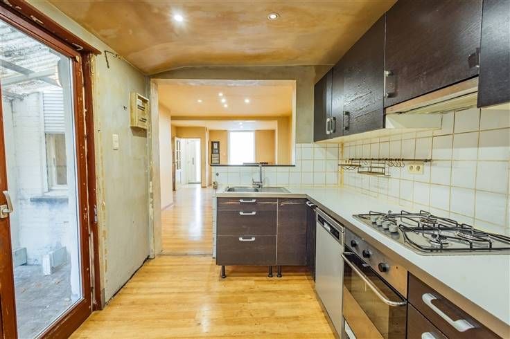 Instapklare , ZEER GUNSTIG (vlakbij aansluiting A12/E19 & vlakbij NATUURGEBIED BLAASVELDBROEK) en CENTRAAL gelegen OP TE FRISSEN woning met TERRAS en RUIME TUIN met tuinberging en met uitweg voor (brom)fietsen ; dubbele beglazing (uitgez raam achteraan living) reeds voorzien ; elektrische rolluiken reeds aanwezig ; Nutsvoorzieningen : water , elektriciteit en gas ; Indeling : kelder ; GLV = inkomhal , ruime living/eetkamer , geinstalleerde 'open' keuken , ingerichte badkamer met ligbad met douchefunctie , dubbele lavabo en wc , TERRAS en RUIME TUIN met tuinberging en met uitweg voor (brom)fietsen ; 1e Verd = 2 ruime slpk en VASTE trap in 1 slpk naar 2e Verd = 1 ruime slpk ; EPC = 595 kWh/m² ; Waterinfo : P-score = B & G-score = B ; Vrij bij akte ! Info : 03/888.12.50.