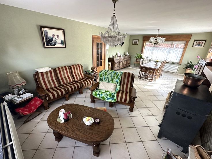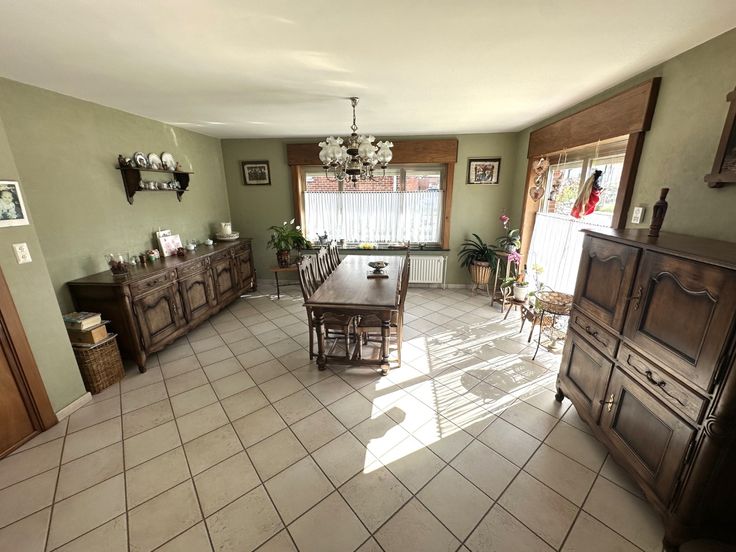 GELIJKVLOERSE VILLA MET TUIN GELEGEN IN EEN RESIDENTIELE WIJK. TOTAAL OPPERVLAKTE PERCEEL 7A 69CA. DE WONING IS INSTAPKLAAR. LICHTJES OP TE FRISSEN. VOORZIEN VAN RUIME PARKING. INDELING: inkomhal, afzonderlijk toilet, ruime leefruimte met cassettevuur op hout, uitgeruste keuken, badkamer met lavabo en douche, 3 slaapkamers, ruime kelder, garage, zolder,… TECHNISCH: dubbele beglazing, verwarmingsketel op stookolie, elektrische installatie te vernieuwen, regenwaterput 2x 5000l – bronwater – stadswater,… VOOR MEER INFO EN OF BEZOEK BEL 0479/92 08 33