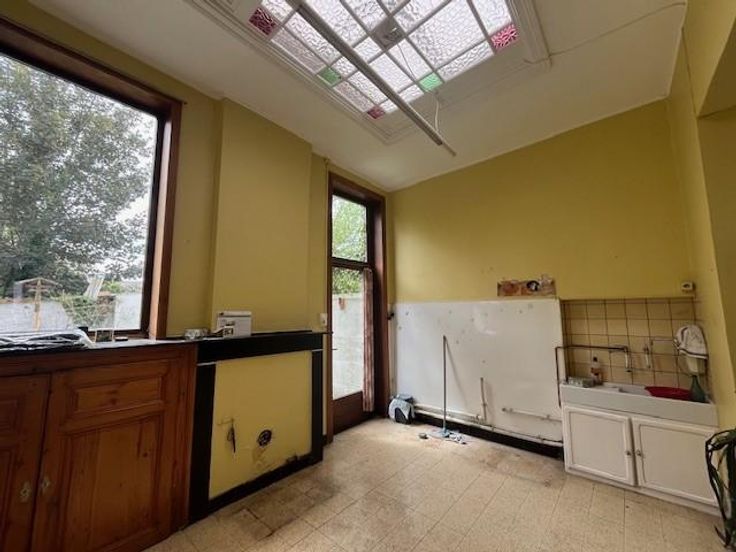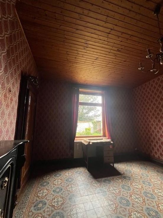 Maison d'habitation comprenant: Rez-de-chaussée: Grande pièce à l’avant (salon) Pièce centrale (salle à manger) Ancienne pièce cuisine à l’arrière Côté gauche à l’arrière du garage grande pièce donnant sur le jardin avec grands placards en bois Etage: Deux grandes chambres dont l’une donne accès au grenier au dessus du garage. Une petite salle d’eau Extérieur : Jardin avec remise Garage : Garage avec accès dans la maison Porte motorisée Grenier au dessus du garage Chauffage central mazout Simple vitrage et double vitrage dans certaines pièces Raccordements eau – électricité – égout – gaz Citerne à eau Isolation à vérifier Maison très calme à proximité de la grand rue de Dour