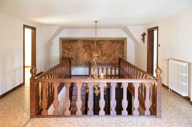 Indrukwekkende inkomhal met een stijlvolle trappen hall - leefruimten, voorzien van massieve parket, die royaal ruim zijn voor hun bewoners - verzorgde witte eetkeuken - functioneel bureel - slaapkamer en badkamer - zeer ruime garage