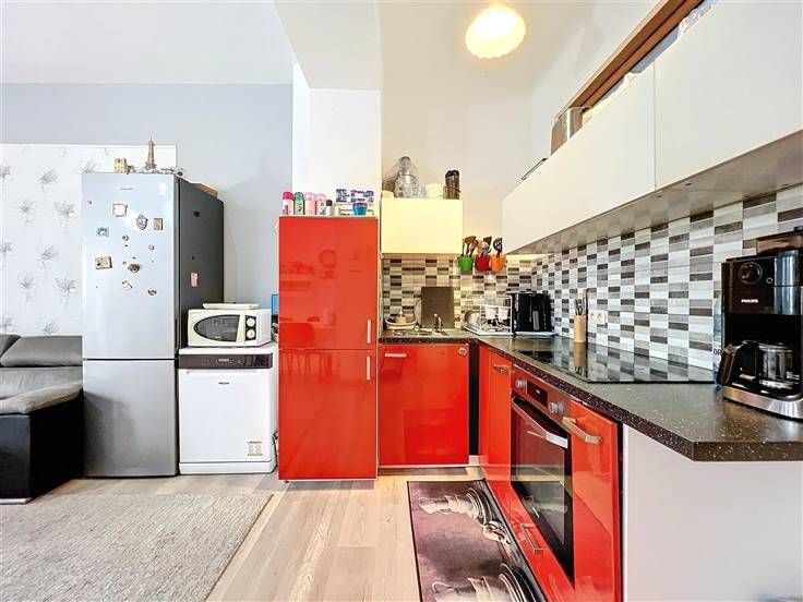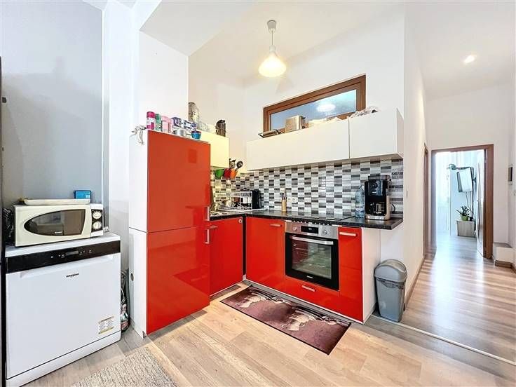 Bockstael district - Schitterende flat van +/- 80m² als volgt samengesteld: een inkomhal, een lichte woonkamer van +/- 35m² met een open keuken van +/- 6m² uitgerust en toegang tot een terras aan de achterzijde van +/- 15m², een mooie slaapkamer van +/- 15m² en een kantoor van +/-7m² dat gebruikt kan worden als 2e slaapkamer, een badkamer en toilet van +/-6m² - Elektriciteit conform tot 2039 - Kosten: +/- 20€/maand (opstalverzekering en elektriciteit voor de gemeenschappelijke ruimtes.individuele water-, gas- en elektriciteitsmeters - Kadastraal inkomen: €807 - Beschikbaarheid overeen te komen - Momenteel verhuurd aan €880/maand - GRP: G