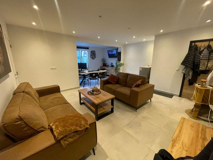 Indeling van de woning : woonkamer 38m² - keuken 8m² - badkamer (wc + lavabo + inloopdouche) 5m².