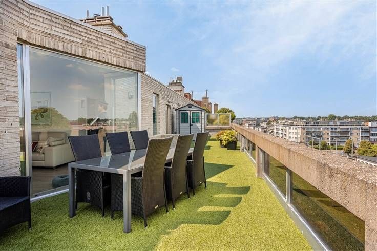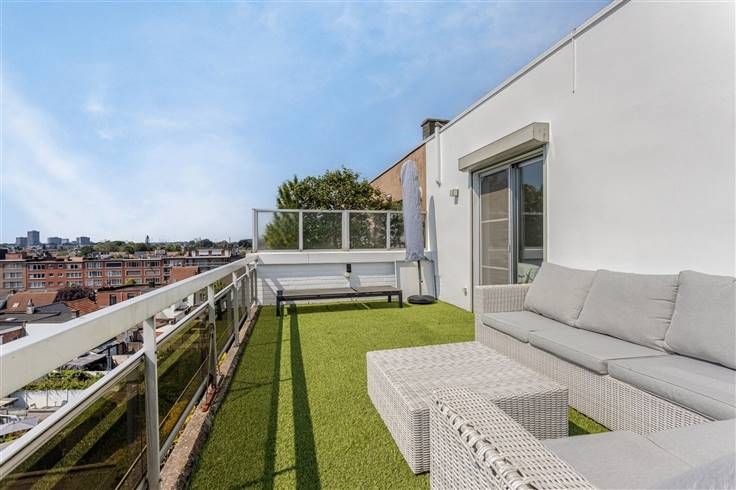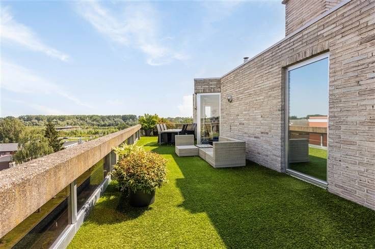 Ontdek dit schitterende dakappartement, ideaal gelegen aan de rand van het prachtige Rivierenhof. Het appartement biedt alles wat u zich maar kunt wensen en combineert luxe, comfort en een unieke locatie met prachtige uitzichten en volop buitenruimte. Op een zonnige dag kan je van bij het opstaan tot het slapengaan genieten van de zon. Hoogtepunten van het appartement: Grote living: geniet van een adembenemend panoramisch uitzicht op de wijde omgeving vanuit uw ruime woonkamer Rondom terrassen: toegang tot diverse terrassen via een groot schuifraam. De terrassen zijn verdeeld in een lounge gedeelte, een ontbijtgedeelte en een dinner gedeelte, met een totale oppervlakte van 140 m², volledig bekleed met kunstgras. Open keuken: moderne witte lak keuken die perfect aansluit bij de stijlvolle uitstraling van het appartement Praktische wasplaats: een handige ruimte voor al uw wasbehoeften Drie slaapkamers met dubbele dressing Aparte bureelruimte: ideaal voor thuiswerken of studeren Luxueuze badkamer: voorzien van een bad om 's avonds te ontspannen en inloopdouche voor een verkwikkende start van de dag Apart toilet Extra's: Een royale kelder van 36 m² voor extra opslagmogelijkheden of als eigen fitnessruimte Garagebox voor 2 wagens om uw voertuigen veilig en beschut te parkeren. EPC Energielabel C - 272 kwh/(m² jaar) Geen renovatieplicht! De elektriciteit is conform Het appartement is asbestveilig Airco in living, keuken en