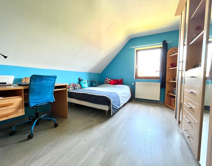 Twins-immo agence à 1,21% de commission *a le plaisir de vous présenter cette villa 4 façades reposant sur une belle parcelle de + de 500m2. Cette construction se compose: d’un hall d’entrée avec WC séparé, d’une pièce de vie ouverte (cuisine, salon, SAM), d’un bureau, d’une agréable véranda avec vue sur le jardin et d’une buanderie. A l’étage supérieur, vous trouverez 3 chambres dont une très grande avec dressing, ainsi qu’une SDB. Vous profiterez également d’un garage.
