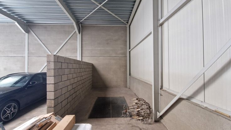 Deze poort heeft een vrije hoogte van ±4m, waardoor de magazijn tevens toegankelijk is voor grote bedrijfsvoertuigen / vrachtwagens.