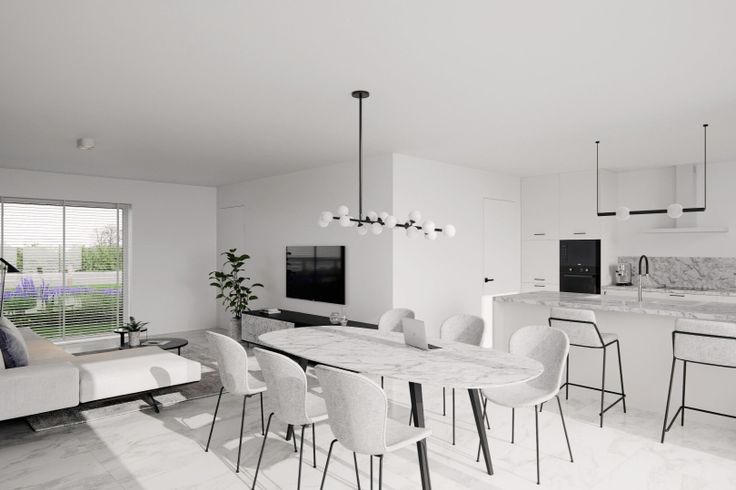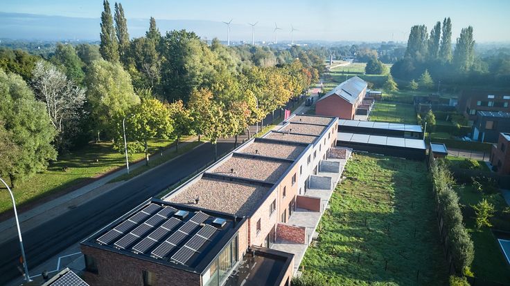 Deze BEN-woning met E-peil 17 werd gerealiseerd met kwalitatieve en sterk isolerende materialen en uitgerust met een warmtepomp, vloerverwarming, zonnepanelen én een ventilatiesysteem met warmterecuperatie.
