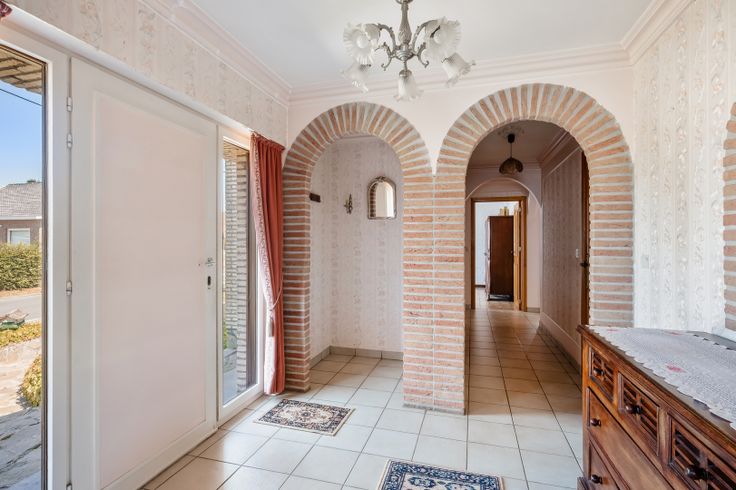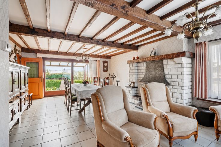 De woning heeft volgende indeling: inkomhal met gastentoilet, leefruimte en woonkamer met toegang tot overdekt terras, ruime keuken, douchekamer, 4 slaapkamers, een badkamer (wastafel, ligbad) en een zuidgerichte tuin met terras.
