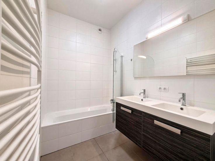 Ideaal gelegen in het centrum van de hoofdstad, prachtig modern appartement in zeer goede staat van ± 97 m² in een blok in een mooie residentie. Het bestaat uit een inkomhal met vestiaire en gastentoilet, een lichtrijke woonkamer (± 30 m²) met kantoorruimte, een volledig uitgeruste Amerikaanse keuken, 2 mooie slaapkamers (± 14 m² en ± 9 m²), een badkamer, een ingerichte wasplaats kamer en een apart toilet. Mooi goed georiënteerd terras (± 10 m²). Kelder inbegrepen en mogelijkheid tot het huren van een parkeerplaats tegen meerprijs. Dubbele beglazing, parketvloer en goede isolatie. Kosten: € 150/maand (Provisie voor het onderhoud van de gemeenschappelijke ruimtes). PEB C. Zo snel mogelijk ontdekken bij Vaneau Lecobel!!