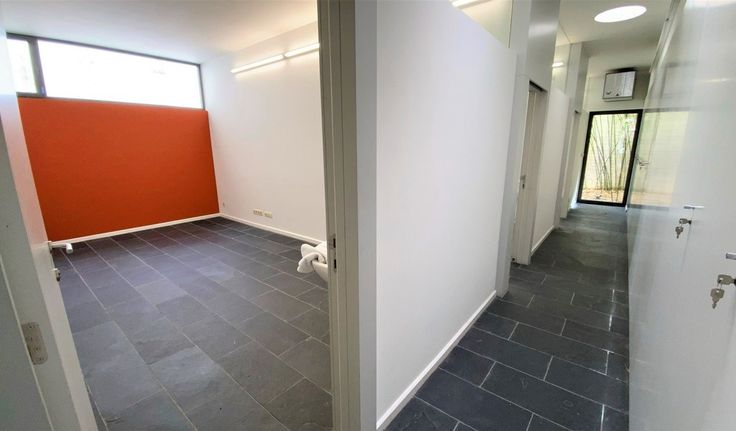 Indeling: grote ruimte, 4 kleine ruimtes (16,5m²), 2 toiletten, kitchenette met toestellen, kelder en berging