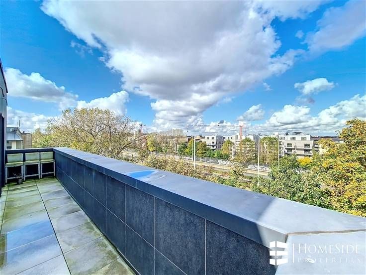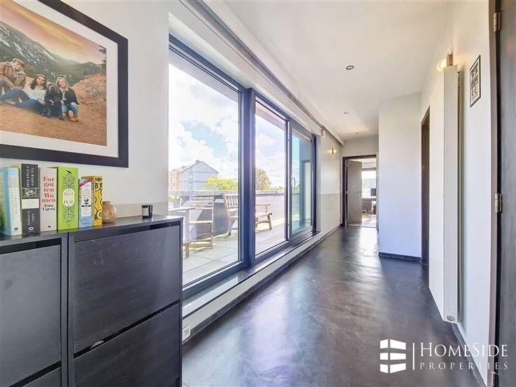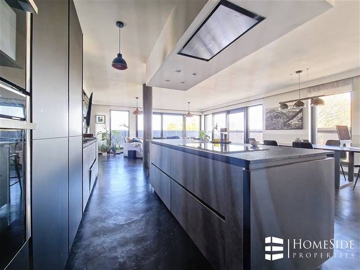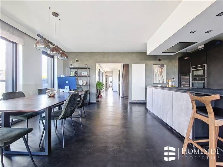 Sorry er is geen nederlandse vertaling beschikbaar. Avenue des Pléiades - Quartier des Constellations/Colonel Bourg - A proximité des grands axes, des commerces et de toutes commodités. Superbe PENTHOUSE de +/-200m² (brut) dont +/-135m² + TERRASSE de +/-65m² en parfait état dans un immeuble construit en 2015 + Possibilité GARAGE et PARKING. L'appartement a été complètement personnalisé par son actuel premier propriétaire qui y a incorporé des matériaux, technologies/domotique et équipements haut de gamme! Il se compose : - Au 5ème étage/ 5 étages (avec ascenseur) : Un magnifique PENTHOUSE qui se dévoile d'abord sur un palier privé avec ascenseur et porte blindée, un grand hall d'entrée avec vestiaire, un énorme espace ouvert de +/-60m² partagé entre un spacieux et très lumineux séjour, une grande salle à manger et une cuisine américaine de marque MOBALPA hyper-équipée avec des équipements de marque NEFF (un grand frigo/congélateur, un four, un micro-ondes , une hotte avec commande à distance, un lave-vaisselle avec séchage ZEOLITH, un frigo "cave à vin", taques à induction, évier et placards avec plan de travail en imitation pierre de schiste). La partie jour donne accès à une TERRASSE rafraichissante et sans vis-à-vis offrant une superbe vue dégagée. Un hall de nuit donnant accès à une TERRASSE orientée plein EST/SUD-EST, 2 belles chambres (+/-17m² et 13m²) dont une avec accès à la TERRASSE. Une salle de douche équipée chez X2O avec douche à l'i