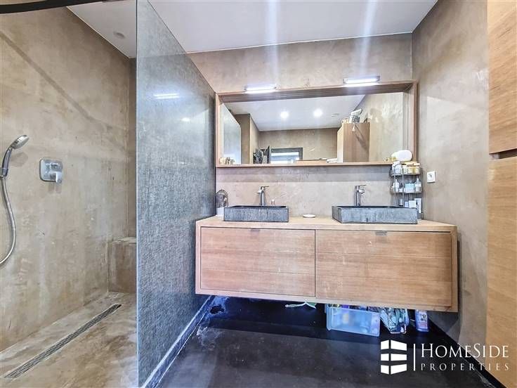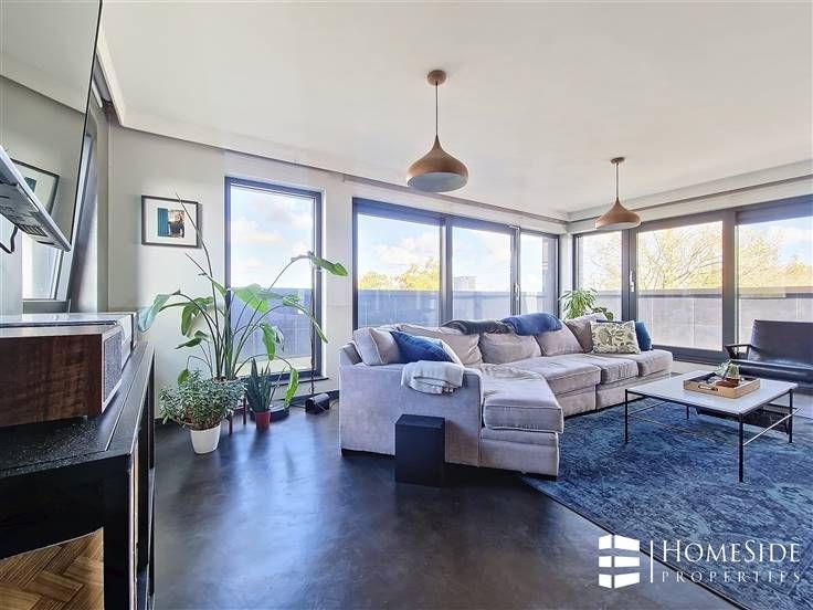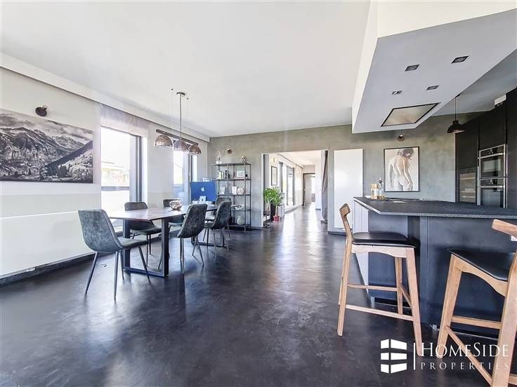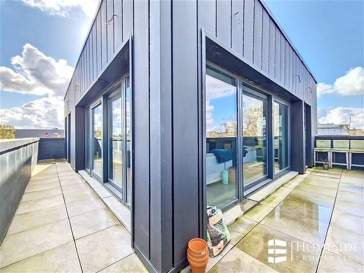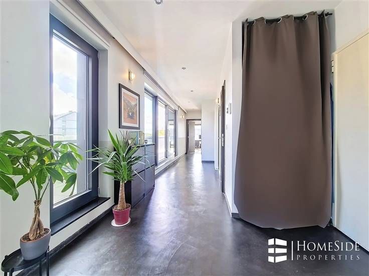 Sorry er is geen nederlandse vertaling beschikbaar. SUR LA COMMUNE DE WOLUWE-SAINT-LAMBERT (Limite Evere) Avenue des Pléiades - Quartier des Constellations/Colonel Bourg - A proximité des grands axes, des commerces et de toutes commodités. Superbe PENTHOUSE de +/-200m² (brut) dont +/-135m² + TERRASSE de +/-65m² en parfait état dans un immeuble construit en 2015 + Possibilité GARAGE et PARKING. L'appartement a été complètement personnalisé par son actuel premier propriétaire qui y a incorporé des matériaux, technologies/domotique et équipements haut de gamme! Il se compose : - Au 5ème étage/ 5 étages (avec ascenseur) : Un magnifique PENTHOUSE qui se dévoile d'abord sur un palier privé avec ascenseur et porte blindée, un grand hall d'entrée avec vestiaire, un énorme espace ouvert de +/-60m² partagé entre un spacieux et très lumineux séjour, une grande salle à manger et une cuisine américaine de marque MOBALPA hyper-équipée avec des équipements de marque NEFF (un grand frigo/congélateur, un four, un micro-ondes , une hotte avec commande à distance, un lave-vaisselle avec séchage ZEOLITH, un frigo "cave à vin", taques à induction, évier et placards avec plan de travail en imitation pierre de schiste). La partie jour donne accès à une TERRASSE rafraichissante et sans vis-à-vis offrant une superbe vue dégagée. Un hall de nuit donnant accès à une TERRASSE orientée plein EST/SUD-EST, 2 belles chambres (+/-17m² et 13m²) dont une avec accès à la TERRAS