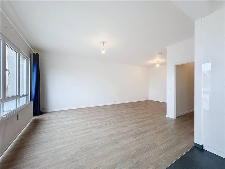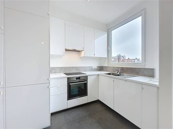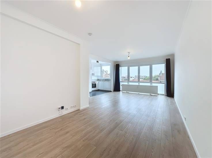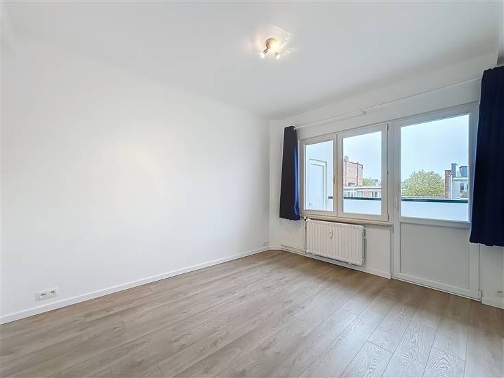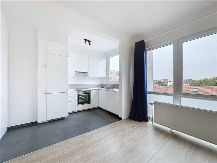 Bezoek dit pand met Nathalie: 0474/57.30.94 // Altitude 100, licht, volledig gerenoveerd appartement met 2 slaapkamers van ±85 m² met 2 terrassen op de 4e verdieping van een goed onderhouden gebouw uit 1960, gelegen in een woonwijk op een steenworp afstand van het Constantin Meunierplein. Het bestaat uit een inkomhal met vestiaire, een lichte woonkamer van ±31 m², een volledig uitgeruste open keuken (oven, kookplaat, afzuigkap, koelkast, vriezer, vaatwasser, wasruimte), twee mooie slaapkamers van ±13 m², elk met een terras van ±3 m², een badkamer (bad, wastafel), een aparte wc en een kelder. PVC-ramen met dubbele beglazing, gemeenschappelijke stookolie-ketel, lift, parlofoon. Voorschot op kosten: 200€/maand (gemeenschappelijke ruimtes, verwarming, warm en koud water). Directe nabijheid van winkels, scholen, het Molière ziekenhuis en openbaar vervoer (tram, bus). Pluspunten: toplocatie, recente renovatie, veel licht, dicht bij het openbaar vervoer. De afmetingen zijn indicatief. Onmiddellijk beschikbaar!