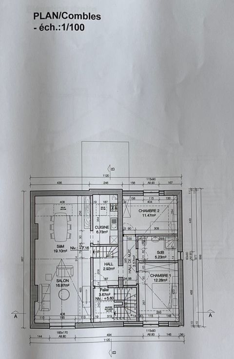 * 2e étage : Salon-salle à manger, cuisine, deux chambres et une salle de bain, offrant une configuration idéale pour un appartement indépendant ainsi que d’une cave pour le rangement et d’un parking privatif.