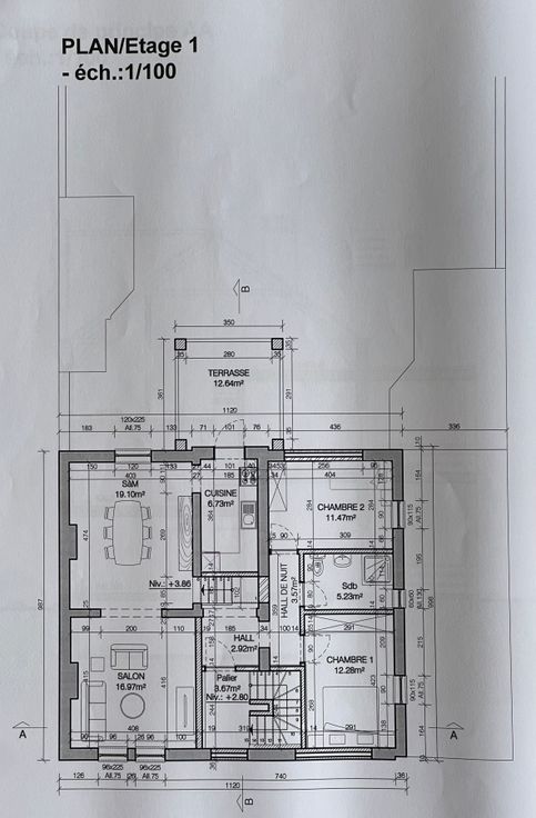 * 1er étage : Un espace de vie chaleureux avec salon-salle à manger, cuisine, deux chambres, une salle de bain, et une terrasse offrant un espace extérieur supplémentaire ainsi que d’une cave pour le rangement et d’un parking privatif.