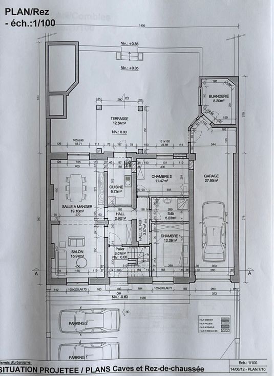 * Rez-de-chaussée : Un salon-salle à manger baigné de lumière, une cuisine à aménager selon vos goûts, deux chambres, une salle de bain, ainsi qu'une belle terrasse donnant sur un jardin privatif, d’un garage et d’une buanderie.