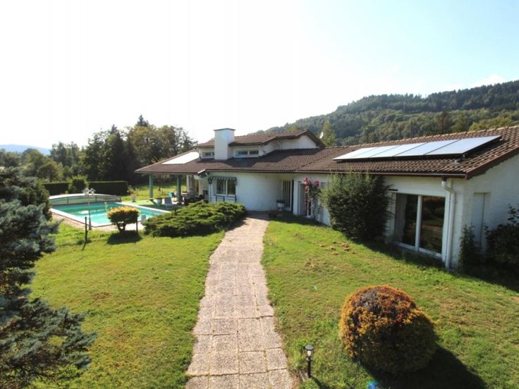 HAUTES VOSGES : Vous rêvez de beaux espaces extérieurs et intérieurs à 20 minutes de la Bresse et 20 minutes du pied du Ballon d'Alsace ? Venez découvrir cette villa de 263 m2 implantée sur un terrain de 5400 m2. Vous apprécierez le jardin agrémenté de la piscine de 10x5m, la terrasse orientée plein sud et l'espace couvert ainsi que la vue sur les montagnes environnantes. C'est l'extérieur idéal pour les moments partagés en famille ou entre amis ! La maison offre également de vastes espaces. Au rez-de-chaussée, le hall d'entrée dessert la cuisine donnant sur la terrasse, une grande pièce de vie ouverte comprenant une salle à manger, un coin cheminée ainsi qu'un salon et un WC. Un espace nuit composé 2 chambres, une salle d'eau, une lingerie et une suite parentale avec dressing, salle de bains et WC séparé. L'étage supérieur propose un bel espace composé d'une mezzanine qui domine la pièce de vie avec coin bureau et bibliothèque et une chambre supplémentaire. Un garage indépendant de 2 box et une autre petite dépendance utilisée actuellement comme atelier avec portes électriques + cave Côté technique : Chauffage au sol chaudière basse température 2018 avec installation de chauffage solaire complémentaire (gaz naturel), ECS solaire, volets roulants électriques, tout à l'égout. Travaux de rénovation à prévoir pour parfaire cette maison d'architecte. Propriété qui conviendra parfaitement à une résidence principale ou secondaire. Ne tardez pas à la visiter !