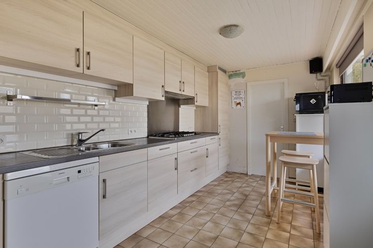 Bij het betreden van de woning kom je binnen in de ruime woonkamer. De woonkamer is ingedeeld in een gezellige zithoek en een eethoek, ter hoogte van de zithoek is er een mogelijkheid om een pelletkachel aan te sluiten. Aansluitend aan de woonkamer bevindt zich de volledig ingerichte keuken. Deze keuken is voorzien van alle nodige apparatuur, zoals een koelkast, wastafel, gasfornuis, vaatwasser en afzuigkap, en biedt bovendien meer dan voldoende opbergruimte voor al je kookbenodigdheden.
