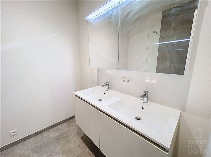 Nieuwbouwappartement met terras en tuin, en een parkeerplaats. Het appartement heeft een hal, een woonkamer met een volledig uitgeruste keuken met centraal kookeiland, een nachthal die leidt naar 2 slaapkamers, een toilet, een badkamer met inloopdouche en wastafel, een technische ruimte, en een tuin en terras. Dit appartement is zorgvuldig afgewerkt met kwaliteitsmaterialen, keuken met stenen werkblad, warmtepomp met vloerverwarming, 10 zonnepanelen (4150 Wp), fietsenstalling met oplaadpunt.