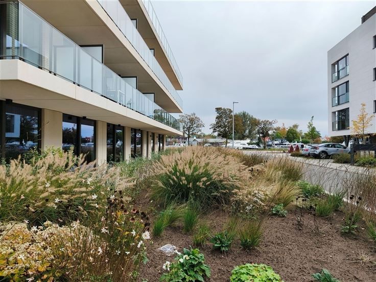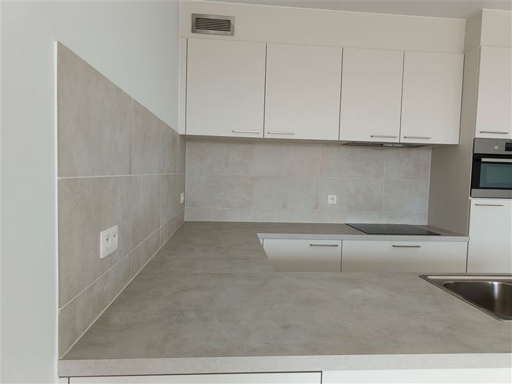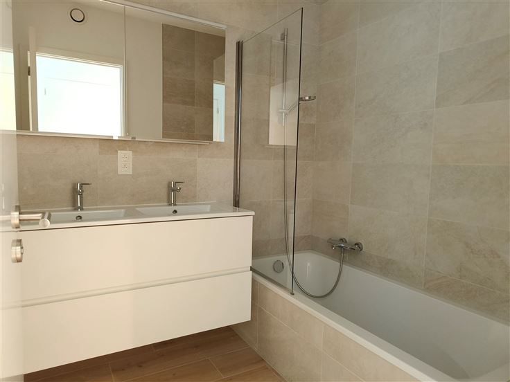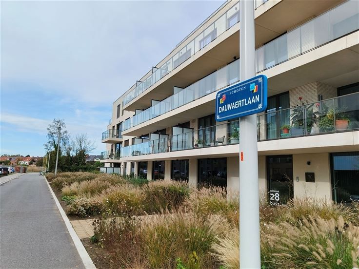 Nieuwbouwappartement aan de vaart in Schoten. Stijlvol huren in residentie De Vaart 1, met de winkels op wandelafstand. Ideaal voor een koppel of alleenstaande. Indeling : Lichte woonkamer met open keuken en ingebouwde toestellen (vaatwasser, combi-oven, koelkast, diepvries, inductievuur), schuiframen naar het terras, aparte technische ruimte/berging, apart toilet, badkamer met ligbad en douchewand, dubbele lavabo, hoofdslaapkamer en dressing/ bureel. Diverse: Kelderberging en ondergrondse autostaanplaats (nr 82) aan € 100 / maand. Gemeenschappelijke kosten provisie € 70 / maand. Ventilatiesysteem, warmtepomp, videofoon, individuele zonnepanelen. Startdatum bespreekbaar. .