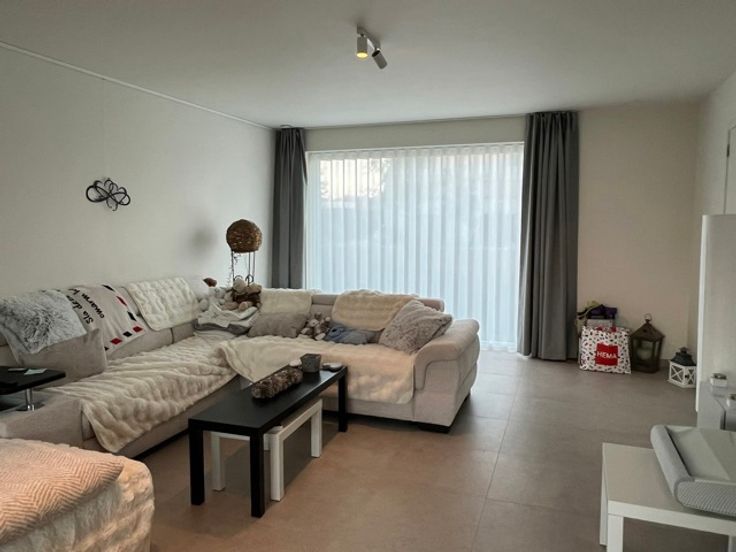 GELIJKVLOERS: Inkomhall met gastentoilet, zithoek en lichtrijke leefruimte met veel natuurlijk licht dankzij de gunstige oriëntatie en raampartijen.