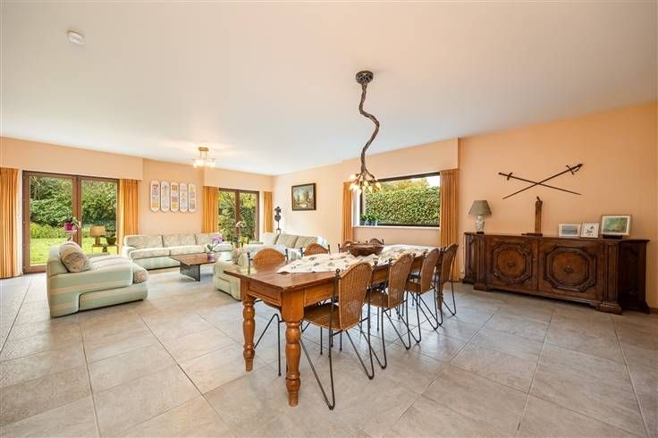 PRE-SALE: Bezoek- en biedmoment: 15 en 16 november 2024. Kijk op onze website voor meer details. Deze ruime villa biedt met 7 slaapkamers en 3 badkamers volop wooncomfort op een perceel van 837 m², uitkijkend op een groen park. De woning heeft een woonoppervlakte van 370 m². Er zijn twee voordeuren, elk met eigen inkomhal en sanitaire voorzieningen, waardoor tweewoonst-mogelijkheden ontstaan: een gelijkvloers appartement met twee slaapkamers, badkamer en keuken, naast een villa met vijf slaapkamers. Ook als woning met praktijkruimte is dit pand ideaal. Beide leefruimtes liggen aan de tuinzijde, wat de optie biedt om een royale, open leefruimte te creëren. Er zijn drie parkeerplaatsen, een dubbele garagebox, en een zuidgerichte tuin. De woning heeft op het gelijkvloers twee inkomhallen, elk voorzien van een vestiaire en toilet. Vanuit de eerste inkomhal betreedt u een ruime leefruimte aan de tuinzijde met aansluitend een keuken en toegang tot het terras. Achter de keuken ligt een bijkeuken die aansluit op de garage en een tweede leefruimte met keuken. Op de eerste verdieping zijn er vijf lichte slaapkamers, twee badkamers en een apart toilet. De woning beschikt ook over een droge kelder, toegankelijk via de garage, waar zich een recent vernieuwde condenserende gasketel met grote boiler bevindt. EPC-label B, een nieuwe gasketel en een ruime zuidtuin maken deze woning een uitstekende keuze.