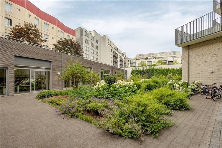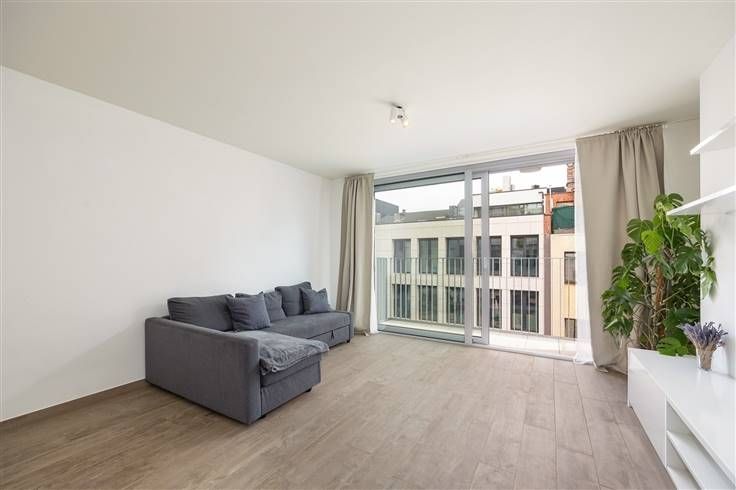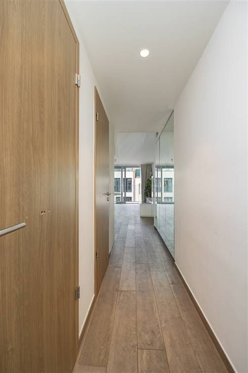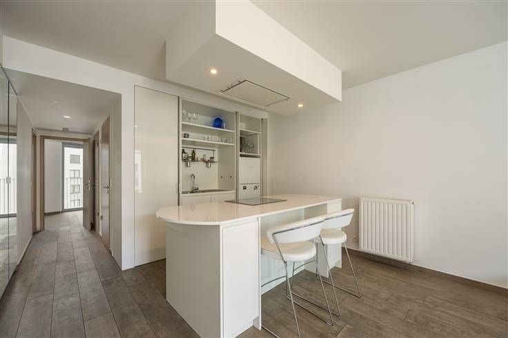 In een mooi, modern gebouw, vind je op de derde en bovenste verdieping dit verzorgde appartement, waar je binnenkomt in de grote leefruimte. De warme parkettegel valt hier meteen op en de witte ingemaakte tv-kast zorgt voor een subtiele afsluiting.