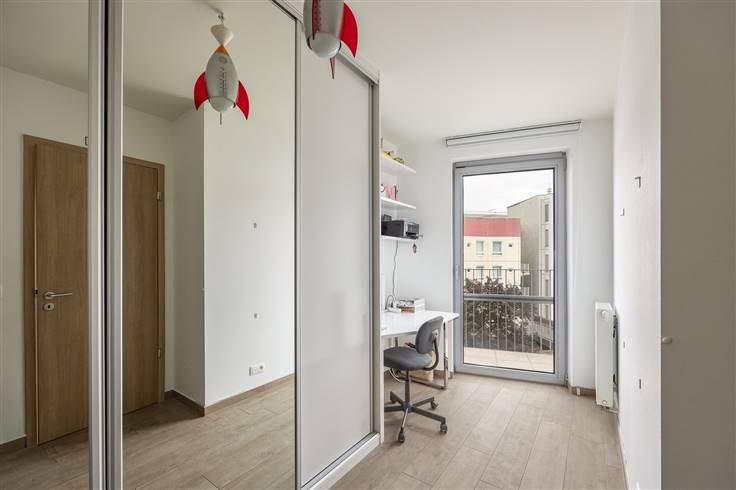 De twee ruime slaapkamers bevinden zich achteraan, en hebben allebei grote, ingemaakte kasten, een mooie doorlopende vloer en toegang tot het tweede terras achteraan, dat uitkijkt op de verzorgde, groene binnentuin.