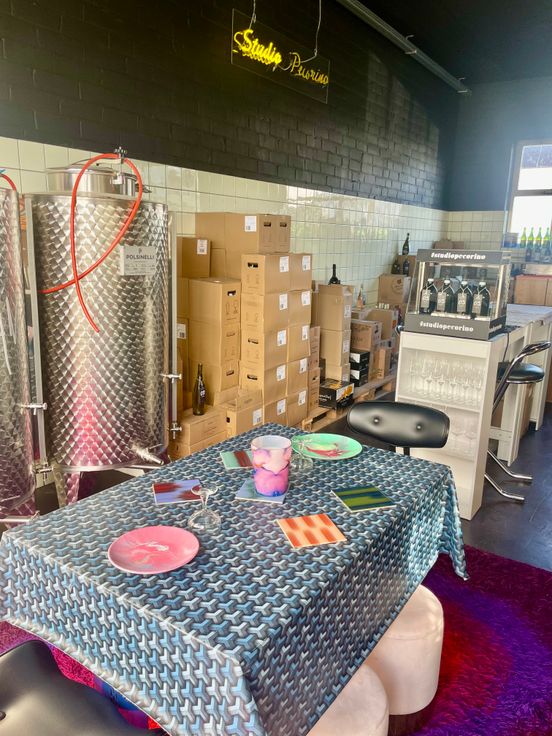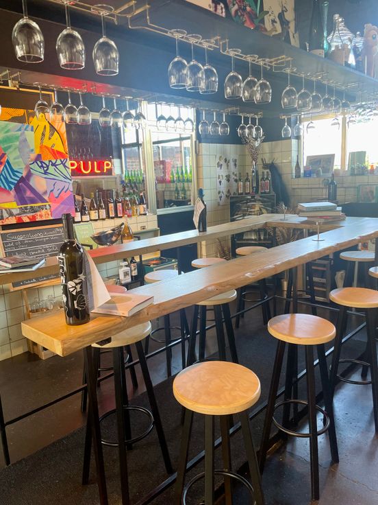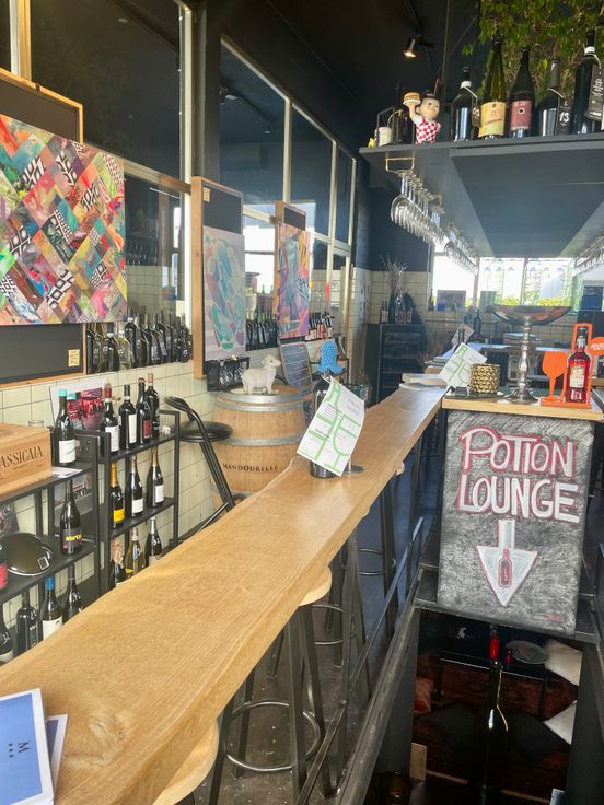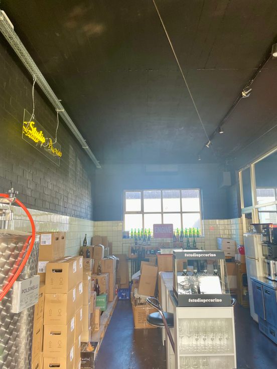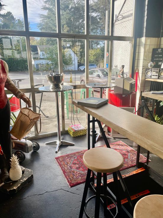 Ancienne station service transformé en caviste avec salle de dégustation et atelier/entrepôt.