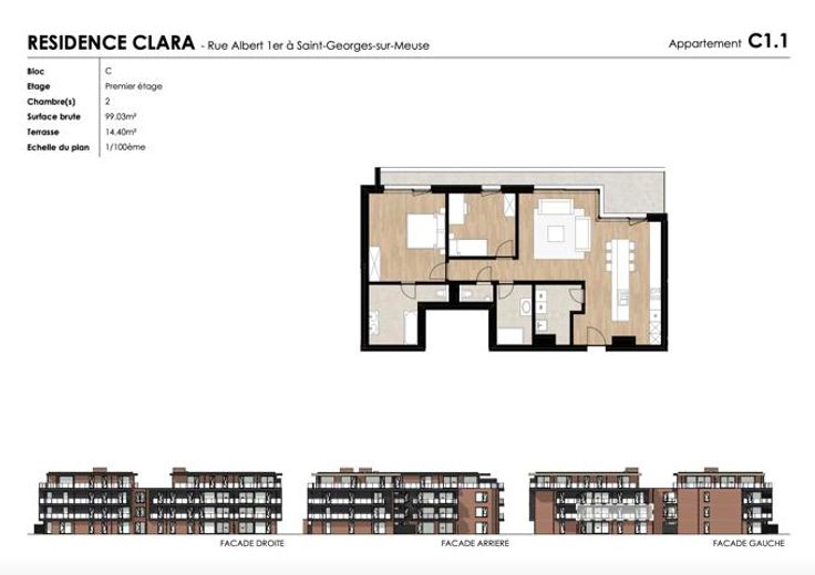 Immobiliënkantoor Marneffe biedt u, in een complex van 34 eenheden, dit appartement van 116 m² op de eerste verdieping met: Inkomhal met toilet, woonkamer van 26 m² open naar keuken van 16 m², 2 slaapkamers van 18 en 11 m², 2 badkamers en een wasruimte. Oplevering voorzien eind 2025, met de mogelijkheid om zelf vloertegels, deuren, keuken, en badkamer te kiezen voor een persoonlijke afwerking. Topuitrusting: aangekondigd E-peil A, vloerverwarming (individuele warmtepomp), aluminium ramen met driedubbel glas, dubbele fluxventilatie, zonnepanelen, volledig uitgeruste keuken, CONFORME elektriciteit, lift ... Buiten: privéterras van 24 m² en kelder inbegrepen. Binnenparkeerplaatsen te koop aan € 25.000 exclusief BTW. Deze luxe appartementen zijn zorgvuldig ontworpen met oog voor detail, hoogwaardige materialen en een praktische inrichting. Er is bijzondere aandacht besteed aan uw privacy. Dankzij de grote raampartijen geniet u volop van het tuinzicht en natuurlijk licht. Ideale ligging in Saint-Georges: winkels, medische centra en snelwegen zijn vlakbij. Hoogwaardig afgewerkt appartement, instapklaar! Verkoop onder btw-stelsel en toepassing van de Wet Breyne (betaling in schijven). Plannen en lastenboek beschikbaar op onze website : https://www.immodemarneffe.be/fr/immobilier-neuf/residence-clara/4470-saint-georgessur-meuse/appartement/6301421