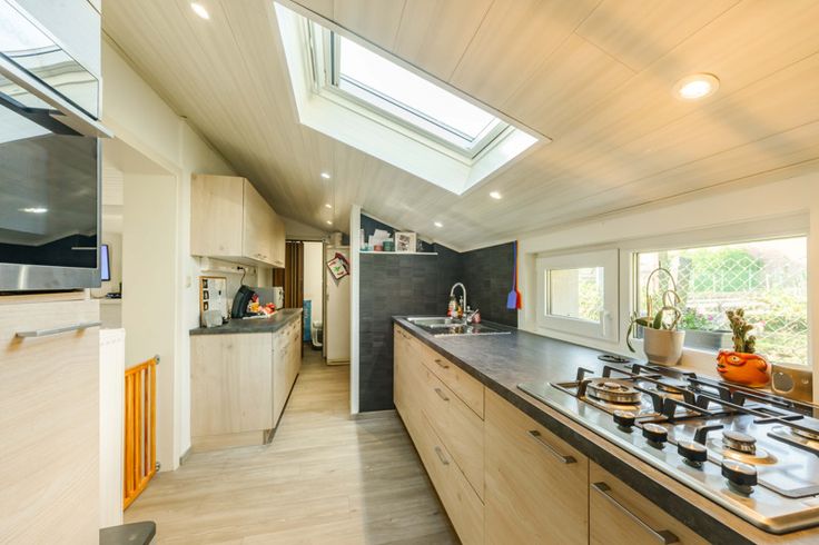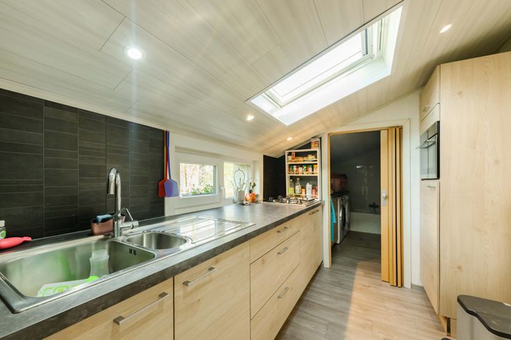 - Velux in keuken is voorzien van schuifgordijn.