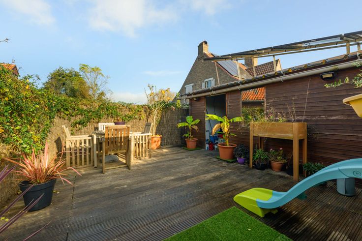 Een instapklare lichtrijke gerenoveerde woning (halfopen bebouwing) met zuidgericht omheind privé terras (40m²) en aansluitend een garage met 2 extra parkings.